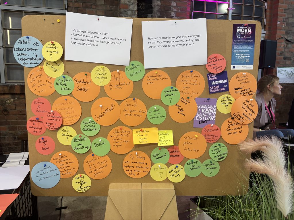 The workshop invited attendees to share their own experiences, observations and best practices around healthy workplace culture. On a large idea wall, participants collected concrete suggestions for improving leadership, communication and team dynamics – key levers for reducing stress and building resilience.