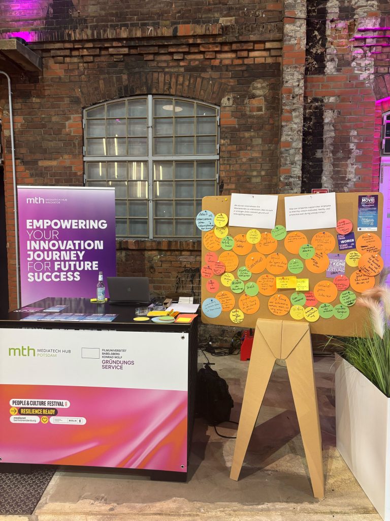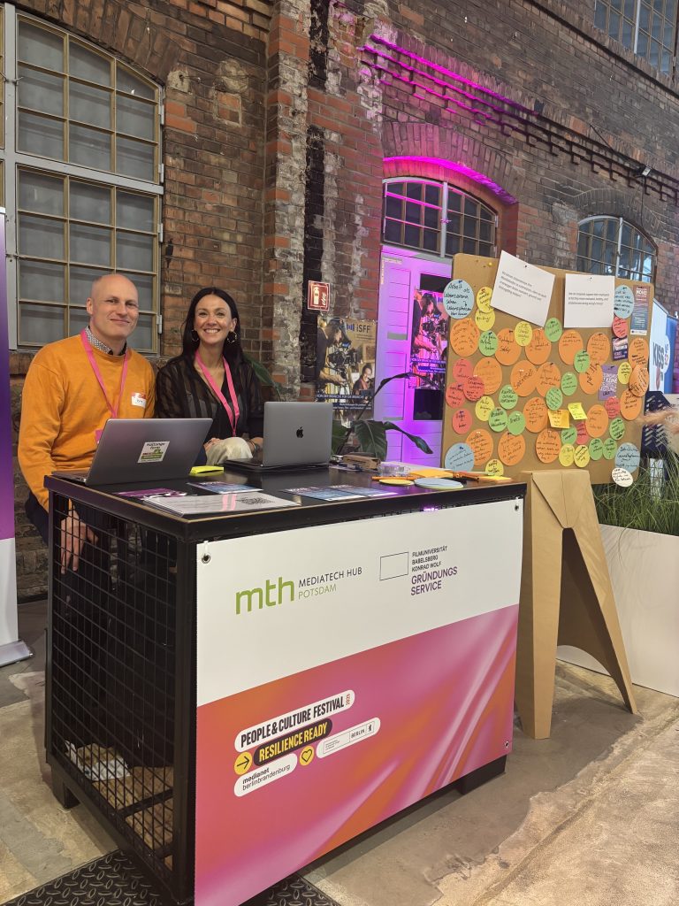 With an interactive workshop station, Olympia Tsakiridou (MediaTech Hub Potsdam) and Jörn Krug (Film University Babelsberg KONRAD WOLF) created a space for reflection, exchange and practical insight. Together with participants, they explored how organisations can better support their people – emotionally, psychologically and structurally – to remain balanced and engaged in challenging times.