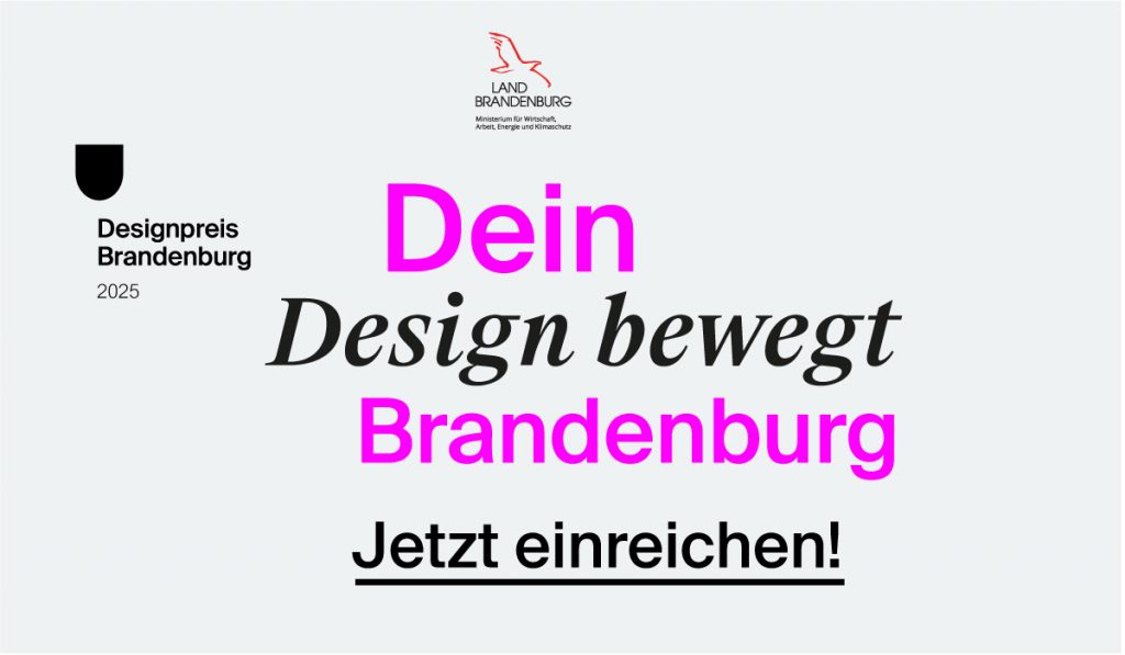 Der Designpreis Brandenburg geht in die nächste Runde! Seit dem 1. August 2025 können Designer*innen, Agenturen, Unternehmen und Auftraggeber*innen mit Sitz in Brandenburg ihre Arbeiten für den renommierten Landespreis einreichen.