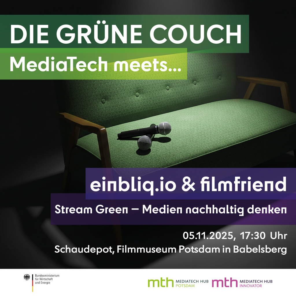 Auf der Grünen Couch treffen sich Startups und KMUs auf Augenhöhe – konkret, inspirierend, ohne Hierarchien. Dieses Mal dreht sich alles um die Frage: Wie gelingt Streaming nachhaltig, ohne auf Qualität und Zugang zu verzichten?