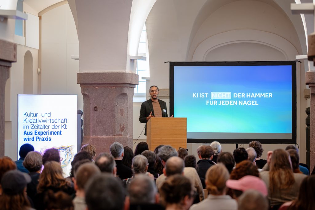 Am 11. Dezember 2025 fand von 11:45 bis 20:00 Uhr im Brandenburg Museum für Zukunft, Gegenwart und Geschichte die Konferenz „Kultur- und Kreativwirtschaft im Zeitalter der KI: Aus Experiment wird Praxis“ statt. Im Auftrag des Ministeriums für Wirtschaft, Arbeit, Energie & Klimaschutz (MWAEK) des Landes Brandenburg brachte die Veranstaltung Kreativschaffende, Start-ups, Expert:innen und Interessierte zusammen, um aktuelle Entwicklungen, Chancen und Herausforderungen von Künstlicher Intelligenz in der Kultur- und Kreativbranche zu diskutieren. Die Konferenz war innerhalb von zwei Tagen vollständig ausgebucht – ein deutliches Signal für die Relevanz des Themas in Brandenburg und darüber hinaus.