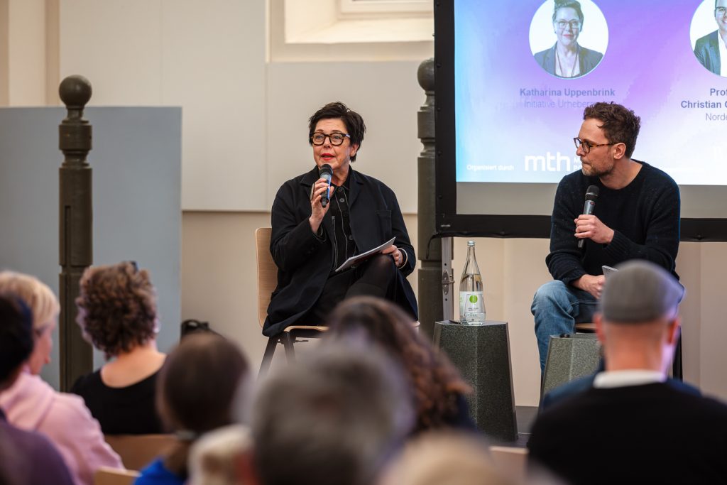 Am späten Nachmittag folgte die Diskussionsrunde KI ohne Grenzen? Recht, Ethik und Verantwortung in der Kreativbranche“, moderiert von Sascha Friesike (Weizenbaum-Institut). Katharina Uppenbrink (Initiative Urheberrecht) und Prof. Dr. Christian Czychowski (NORDEMANN) beleuchteten, was aktuelle Entwicklungen rund um Regularien wie den EU AI Act, Transparenzpflichten, geistiges Eigentum, Vergütung und Haftung für die Kreativpraxis bedeuten.