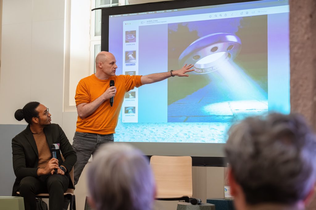Den Abschluss bildete die Präsentation der Workshopergebnisse. Hier zeigten die Teilnehmenden u. a. ein Spendenaufrufvideo mit Social-Media-Kampagne, schnelle Produktvisualisierungen (z. B. Konzeptideen im Produktdesign) sowie Skript-, Storyboard- und Filmbausteine für kreative Stoffe.